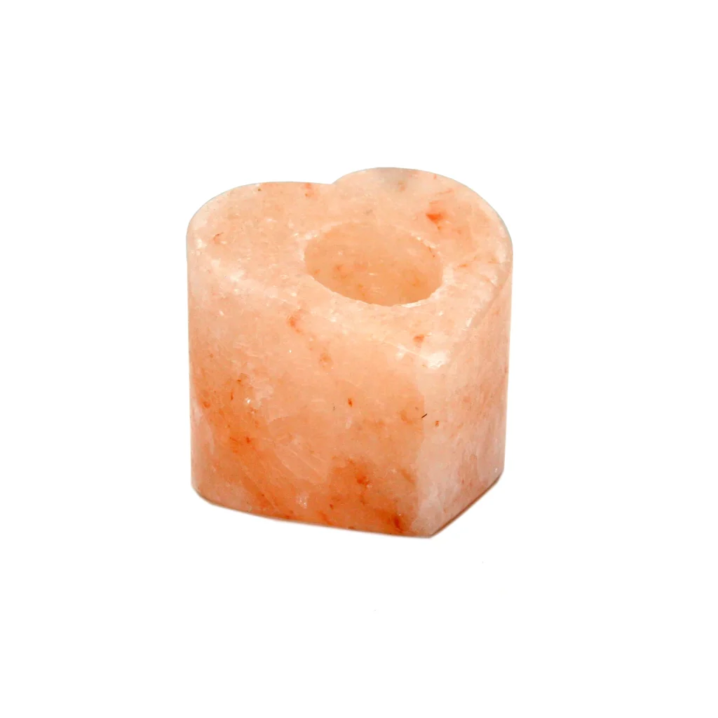 A heart-shaped salt candle holder with a slope, adding a romantic and calming touch to any space.