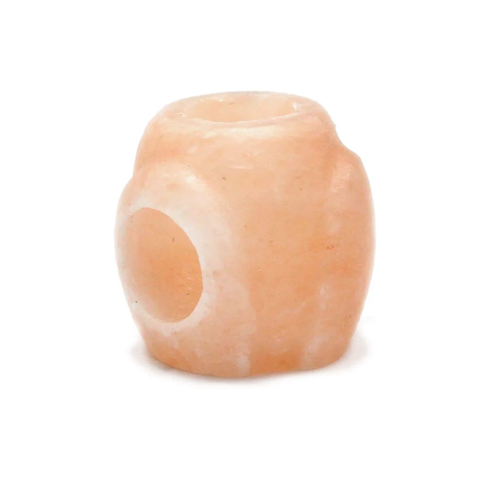 A natural salt candle holder with two holes, offering a warm and inviting ambiance.